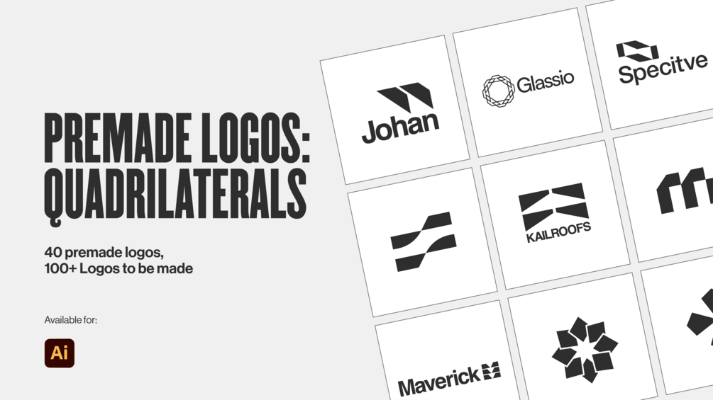 Pre-made logo package that has unique quadrilaterals shapes and symbols for logo designers. Better your logo design skills by using shapes that align with your logo design sketches. All logos can be used for client work when downloaded. Enjoy!
